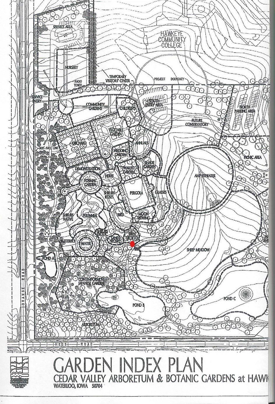 There was a garden in the Master Plan, Phase 1-B, called the Fern Grotto. This is part of the description for it “The fern grottos along the Mississippi palisades in northeastern Iowa provide the inspiration for this garden. …….”