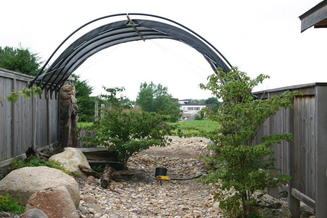 “Fern Gully” was constructed with ferns, pieces of wood, and small dogwood trees. Initial funding for the project came from a memorial gift in honor of Maurine Crisp’s mother. Arches with shade cloth were installed to shade the garden.”