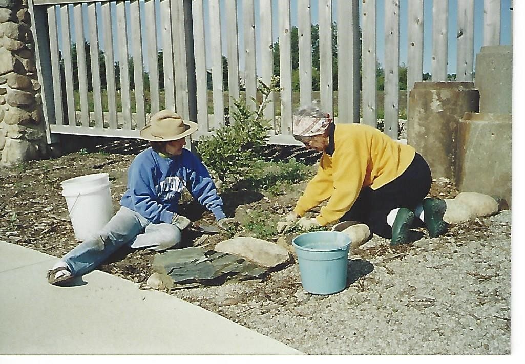 I have a few pictures of what looks like some type of mini-event for the new Children’s Garden. I know that Helen and Max Guernsey-shown on the right of the second picture were long-time patrons of the Arboretum and major donors for the Children’s Garden and I know the lady on the left is Jan Guthrie a major force at the Arboretum from the beginning who remains so currently. I don’t know the gentleman in the green shirt.