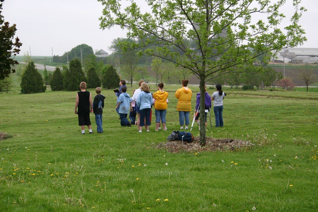 The planned location for the proposed garden in this project was to be in the small grove of Honey Locust trees that were original to the site. They are Northeast of the Herb Garden, which puts them almost directly North of the Sesquicentennial Forrest.