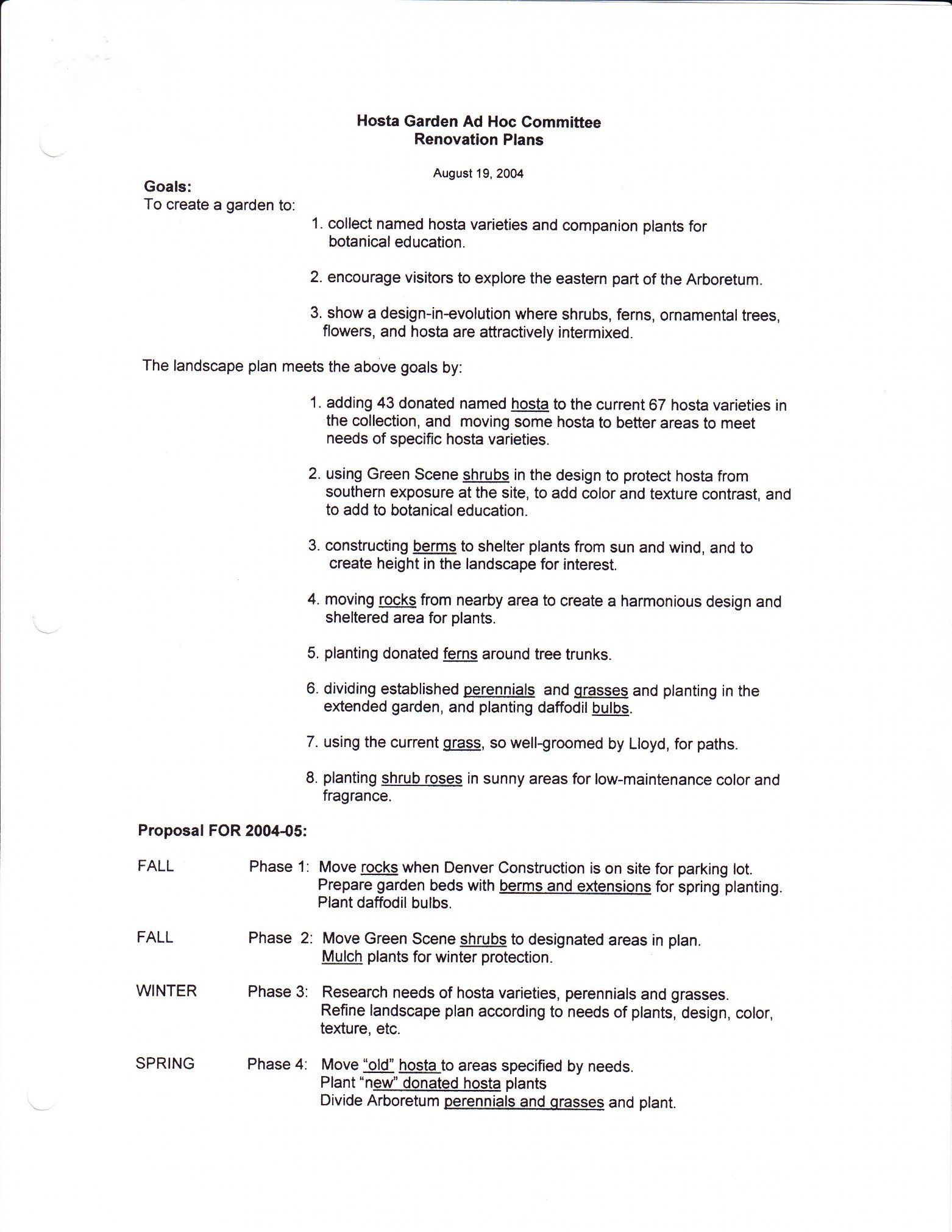 This year Initial plans are being made for the creation of a shade garden. The expectation is that this project will carry over into 2005. This is another garden that is on the Master Plan Garden index