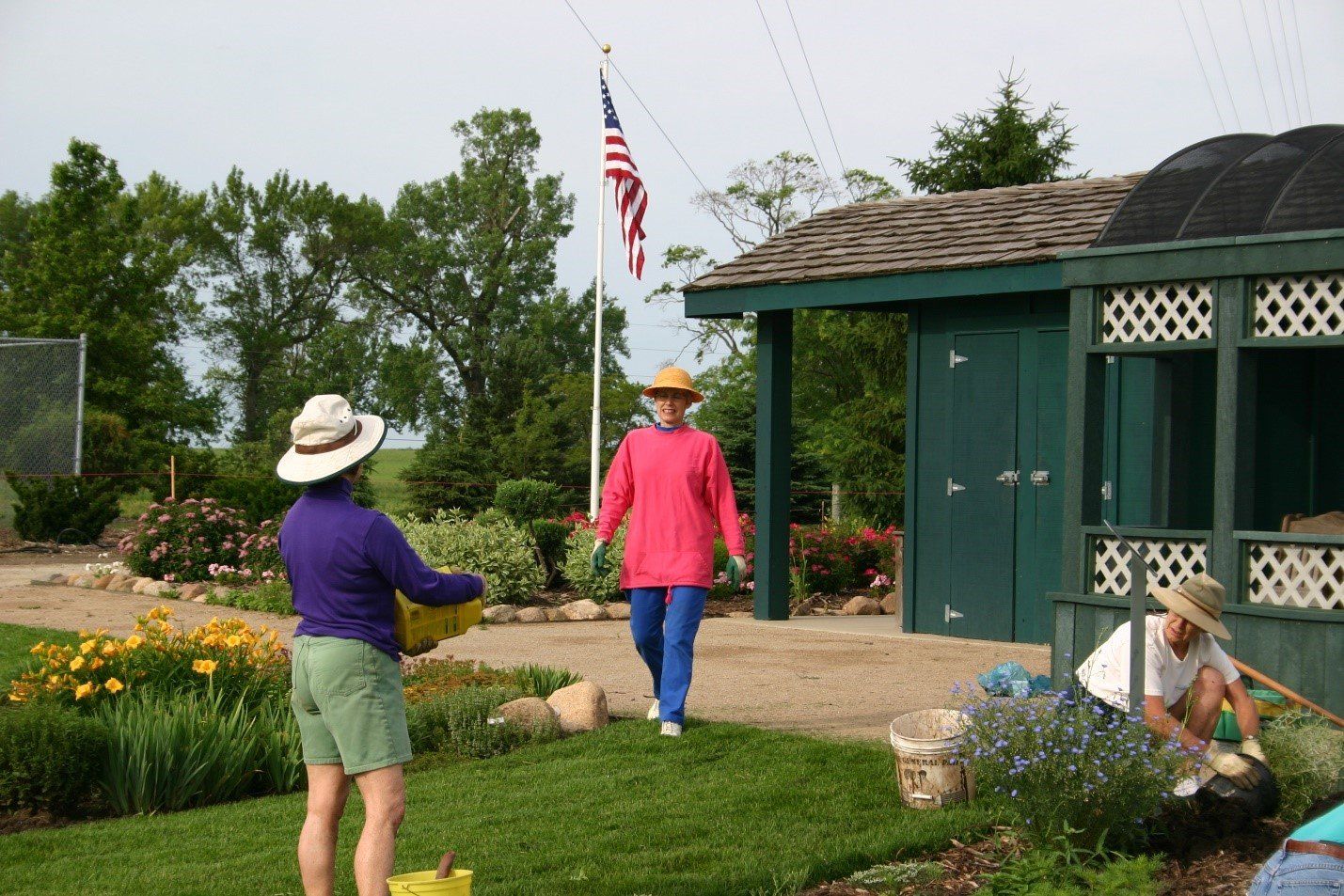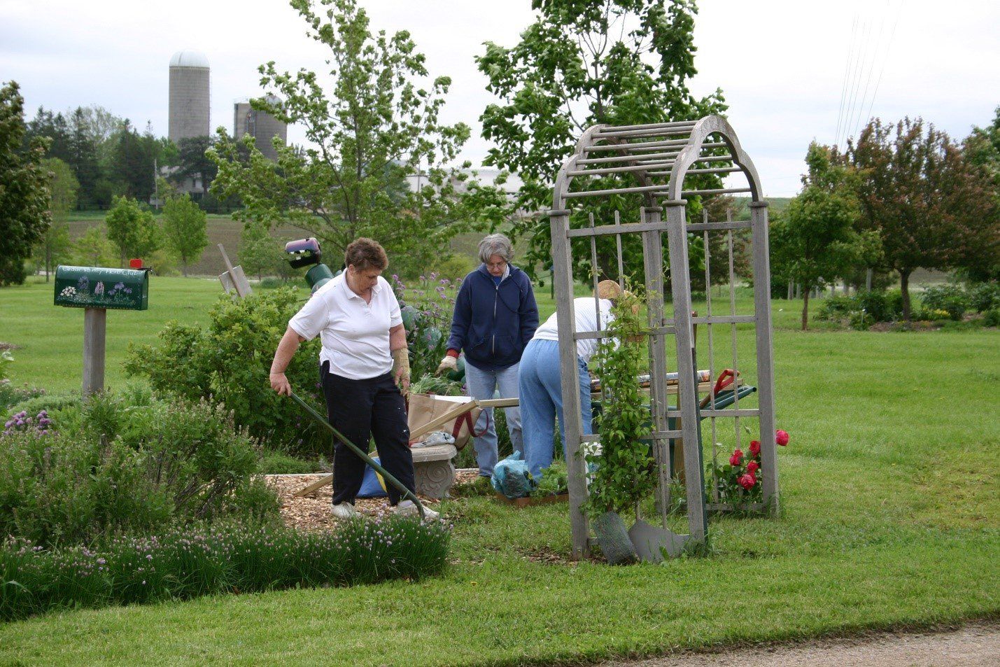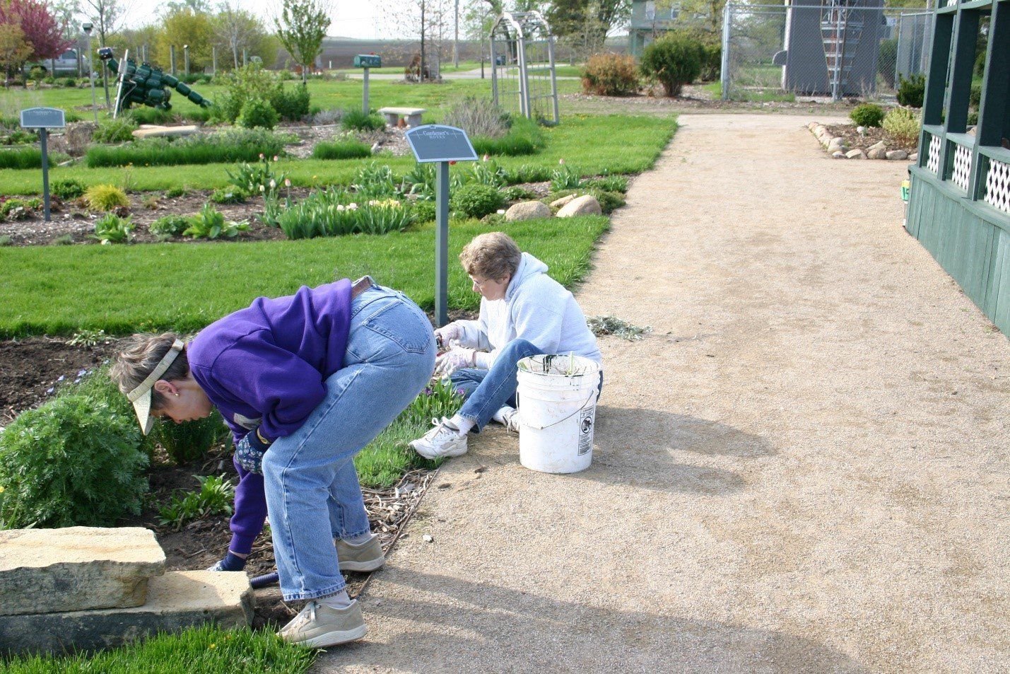 There are several photos of lots of folks working on the gardens in what looks like early spring, so I am going to say this is one of our annual events where we start the growing season by grooming the plant beds. As you can see some are stirring already.