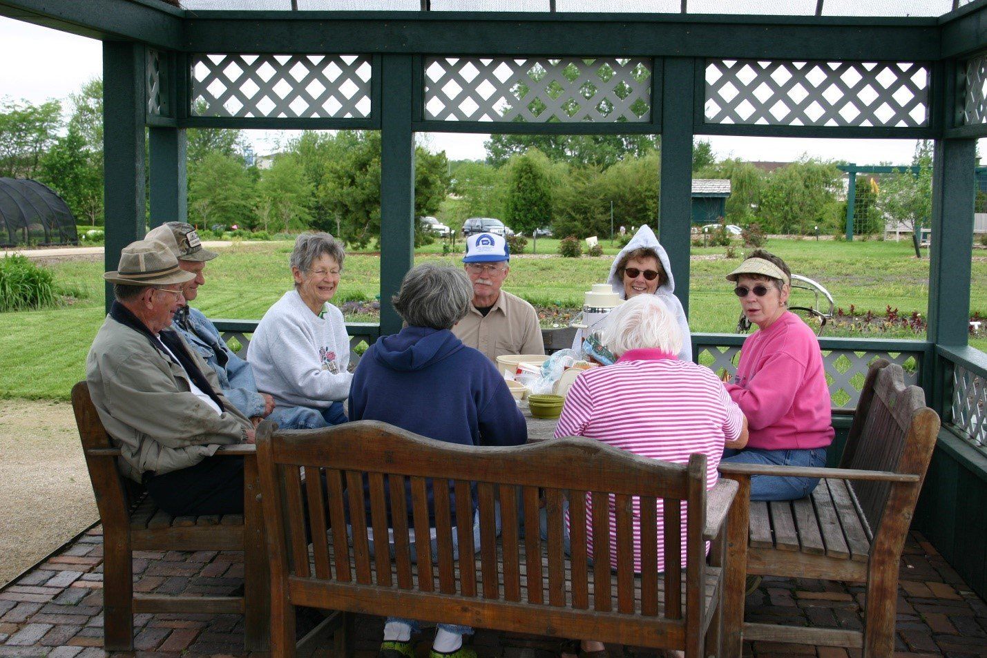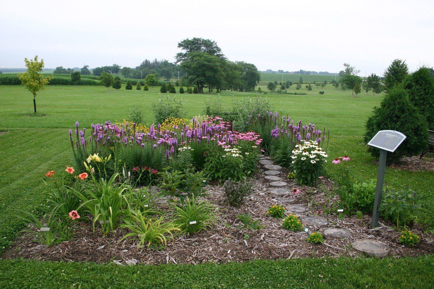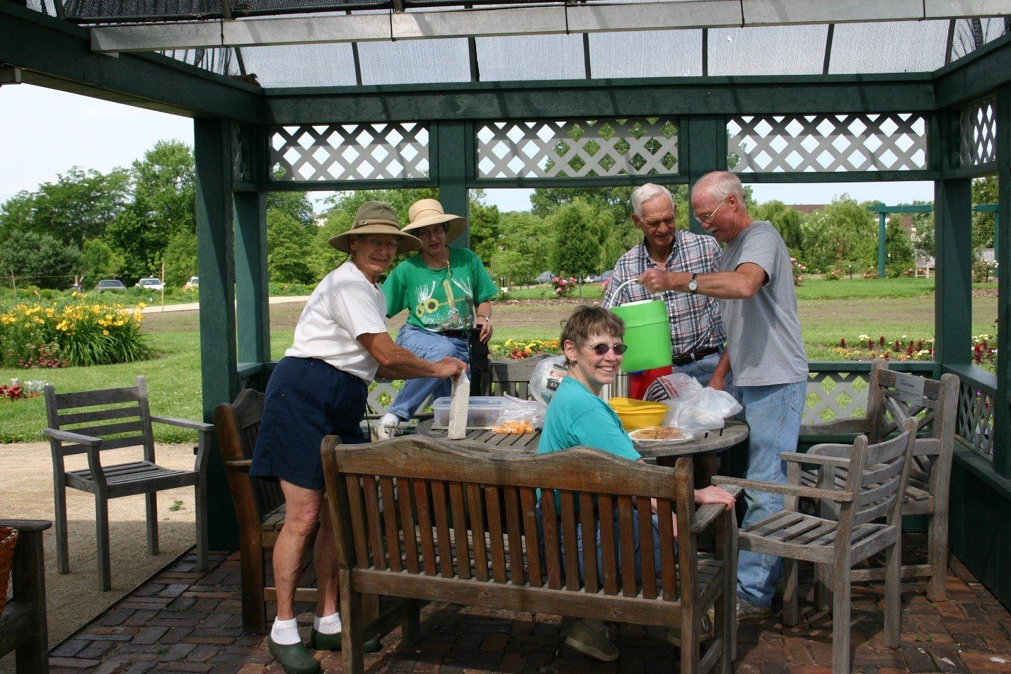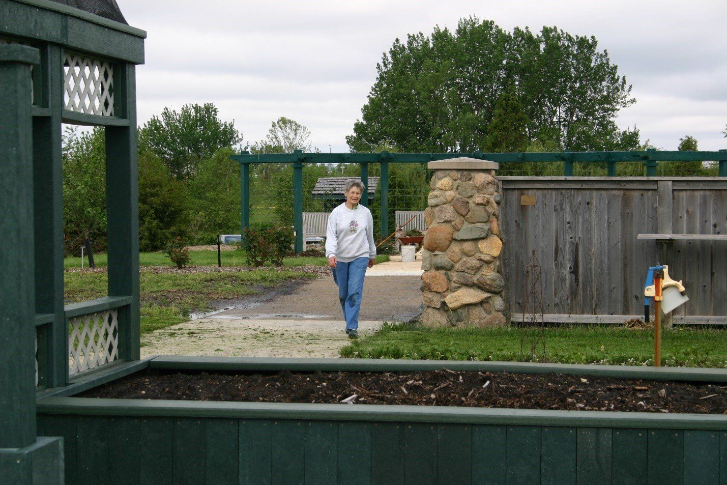 “Sharon Jordan and other volunteers started the Shade Garden with just a small collection around Locust trees. There used to be a Hosta Club (Rhonda and Mike Deeds) very prominent in the area.”