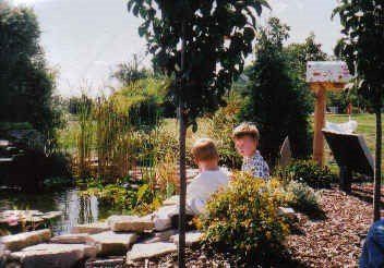 “Catalpa trees and boxwood shrubs were planted as a ‘green’ parking lot. Larry Kurtz with AHTS, Waterloo was the Landscape Architect. Waterloo City Forrester, Todd Derifield, planted the 14 catalpa trees.” (it would seem from the computer disk, that these were planted last year.) Driving into the parking lot, you will notice that it has been renovated and expanded. The parking area in the center of the parking lot will have 100 hardy boxwood shrubs to serve as bumper guards for cars. “The following photo shows the ultimate result of this project, it was taken three years after the project was completed.