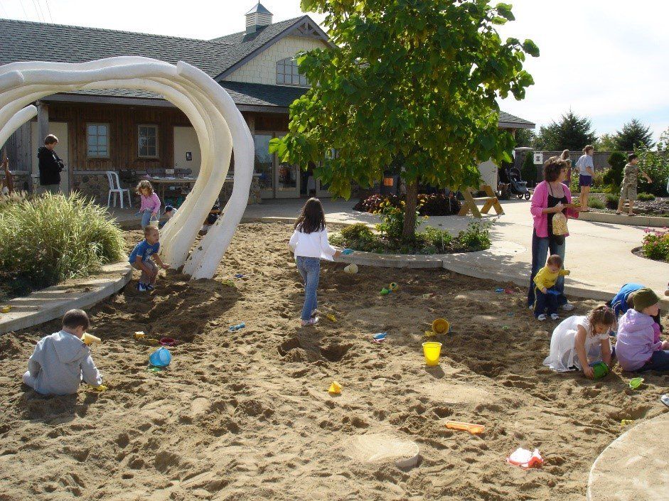 “Situated at the entrance to the Children’s Garden - and home to Sparky the dinosaur! – the White Garden showcases a variety of perennials with white flowers and/or foliage. The Activity Lawns are a popular spot for summer education programs with plenty of space for games and play.”