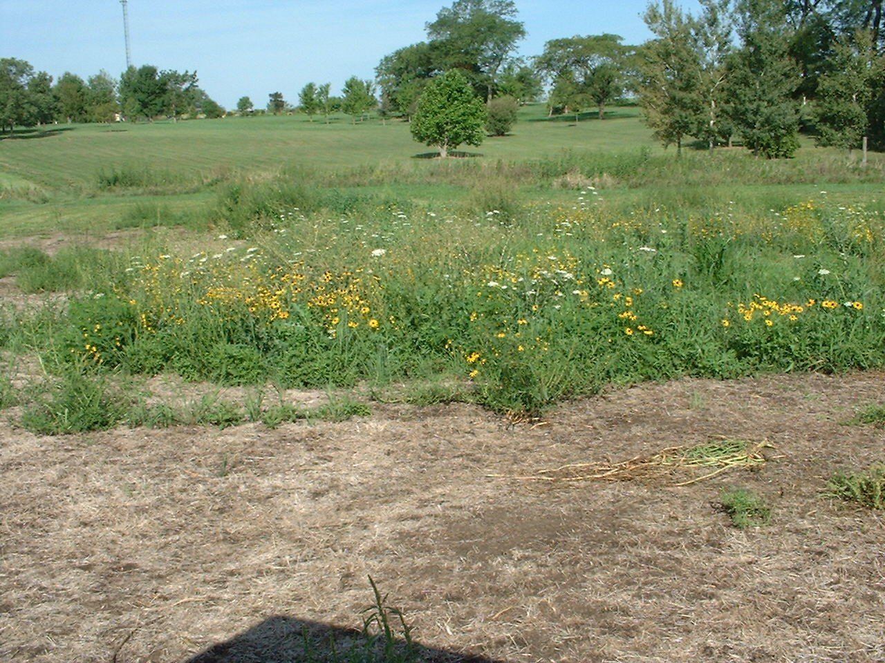This year a group of Terry Roger’s Hawkeye students re-purposed some “weed field” land that is located on the far eastern end of the Arboretum across the creek into a prairie. Unfortunately, the harsh drought during the summer produced less than great results but they re-seeded it in the fall and hopes are high that the area will yet develop into what we are hoping for. This is about a 2-acre space and is on either side of the mown grass path.