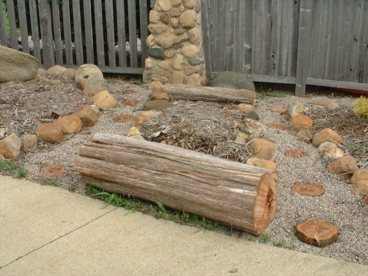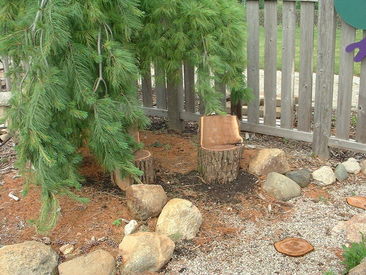 Randy also cut out some chairs from a cedar log and built a “balance beam” for the toddler trail.