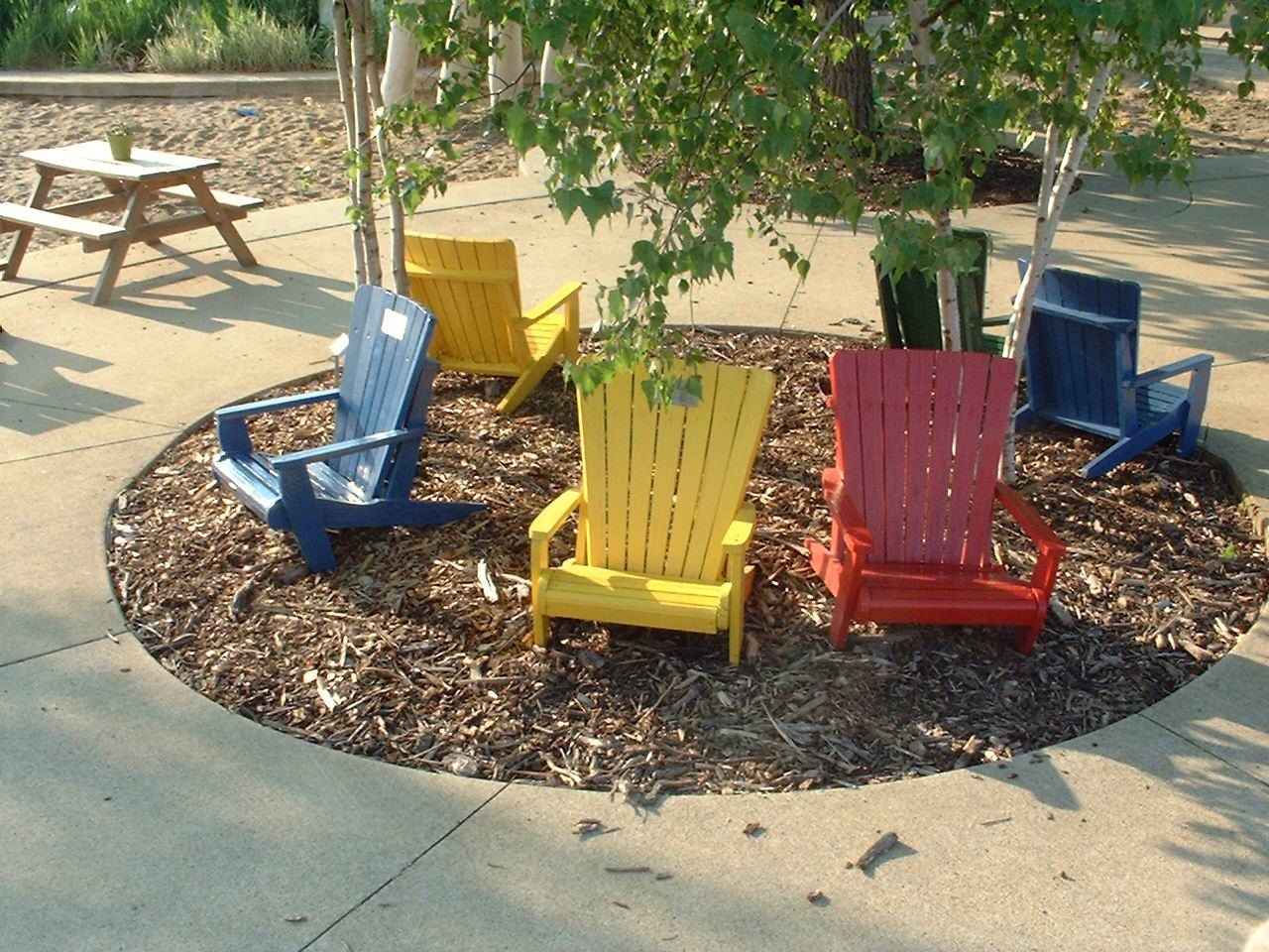 The Children’s Garden needed some more bright colors so the kids chairs were painted