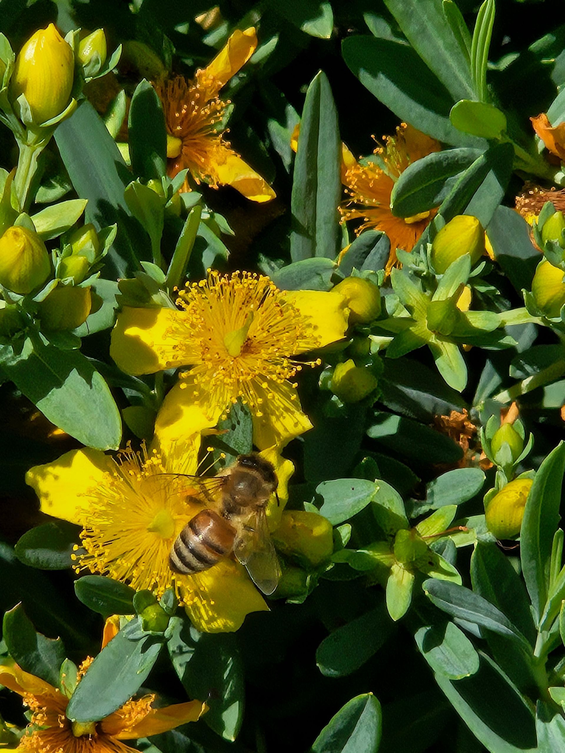 Speaking of pollinators, I was asked yesterday about the name of a plant. It was a lower-growing shrub that was covered with yellow flowers. The yellow flowers were covered with bees, good forage for the bees this time of year and a good addition to any shrub border or cottage garden.