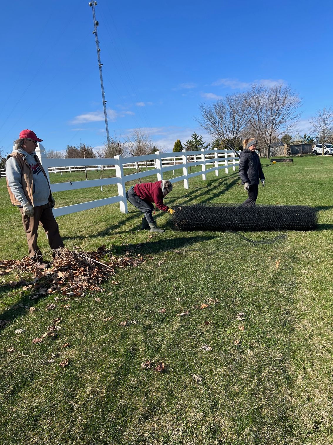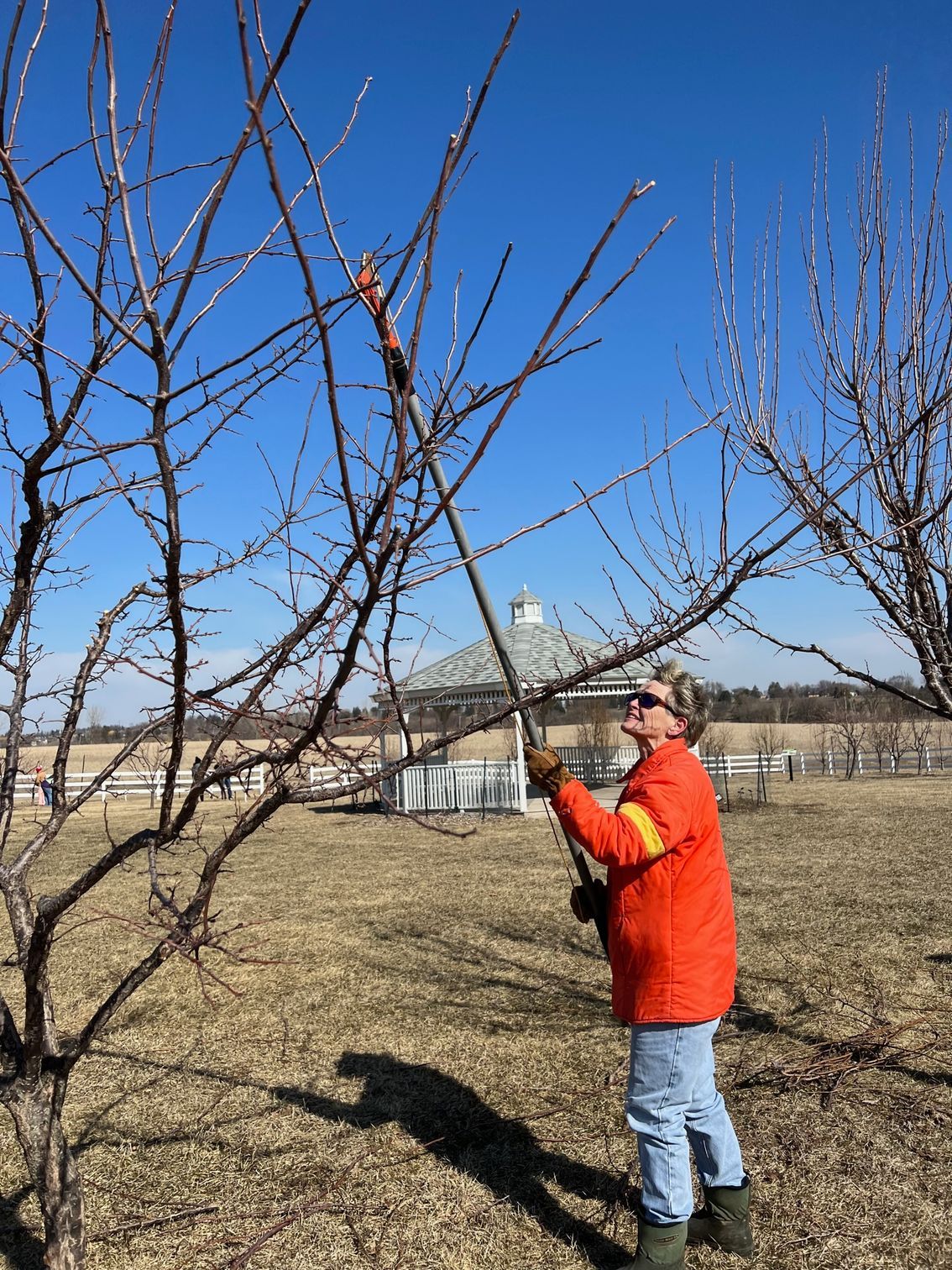 In typical Iowa fashion, the weather patterns have shifted once again. Although today is sunny the temperatures are decidedly cooler. Undaunted, we take down the deer fence around the orchard.