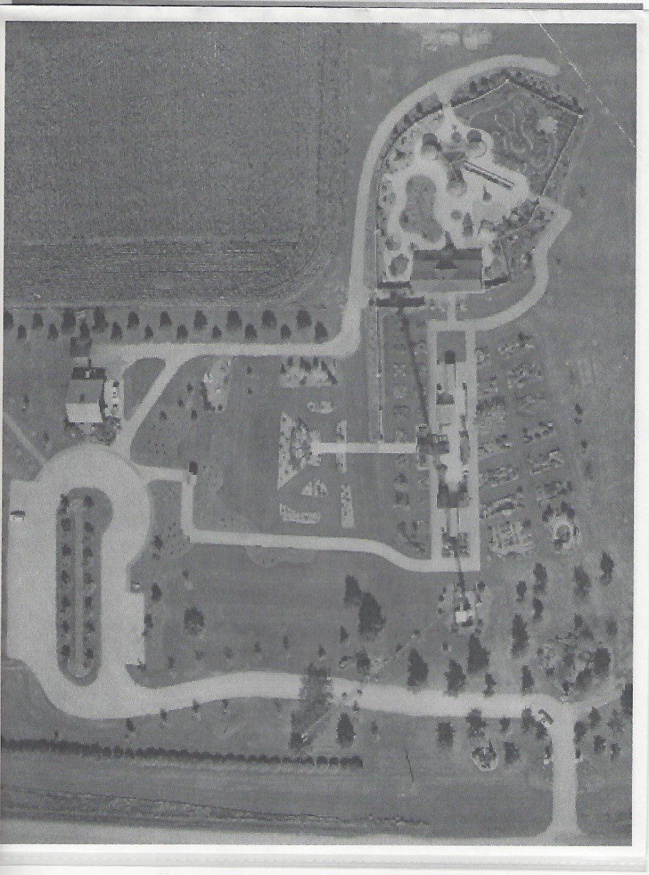 There were ten different varieties of flowers planted here as well as 3 small Gray Dogwood trees. The Activity Lawns were three oval lawns surrounded by gravel pathways.