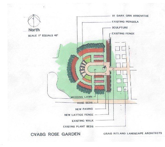 We have discovered that this space is becoming popular as a wedding venue and that we can generate some revenue with rentals. Remember also that the original Master Plan called for a Wedding Garden and two other Rose Gardens. It seems that, perhaps, the present Rose Garden is moving more toward being the Wedding Garden.