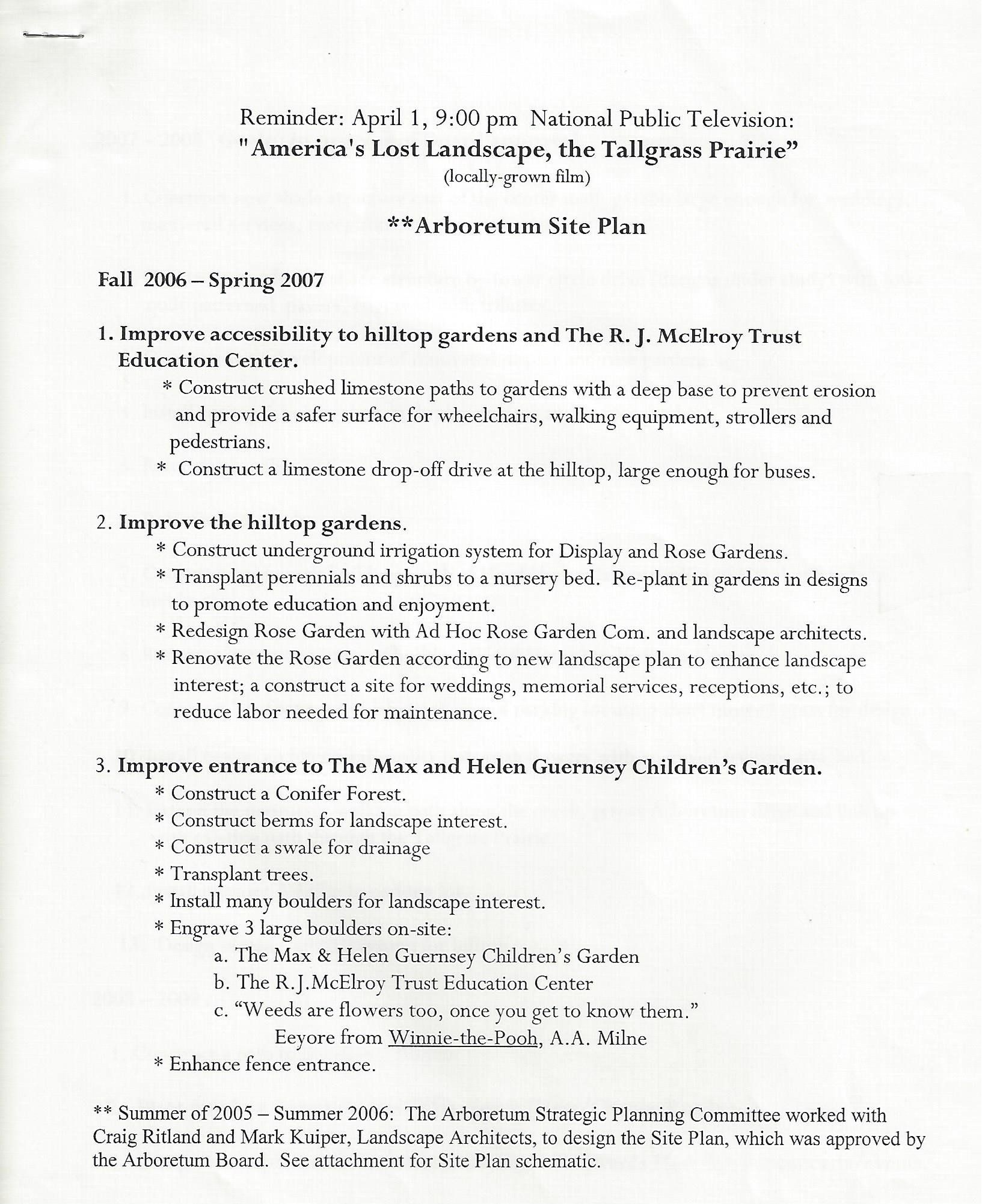“Re-designed and re-planted Rose Garden and phased out the Buck Rose collection. Planted 94 ‘Techny’ Arborvitae around the perimeter of the Rose Garden and installed a temporary irrigation system to be used until the trees were well established. An oval brick walkway was installed in the center of the garden with the center sodded. Craig Ritland assisted with the design.”