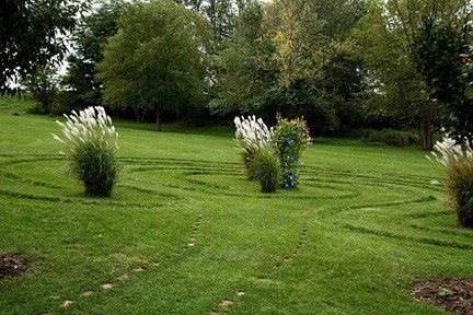 The labyrinth is Kentucky bluegrass with two clumps of Calamgrostis x acutiflora ‘Karl Foster’ at both the entrance and center.”